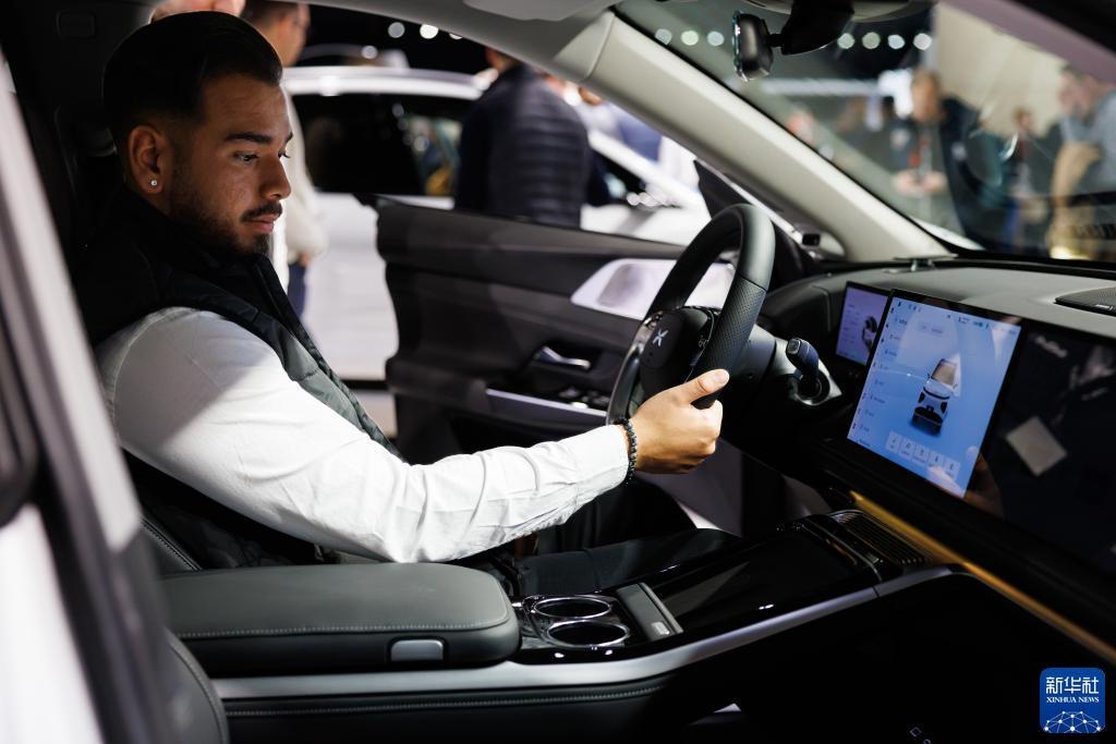 2月3日,一名男子在瑞典斯德哥爾摩舉辦的電動(dòng)車(chē)展上試駕小鵬電動(dòng)車(chē)。