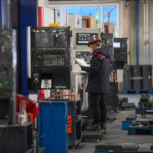 2月3日,在內蒙古赤峰市寧城縣一家科技有限公司的車(chē)間內,工人操作機器進(jìn)行生產(chǎn)。