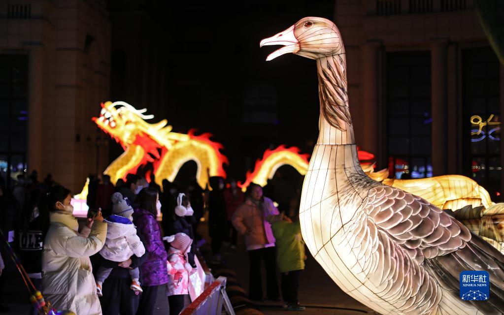 2月3日,游客在營(yíng)口遼河老街觀(guān)賞花燈。