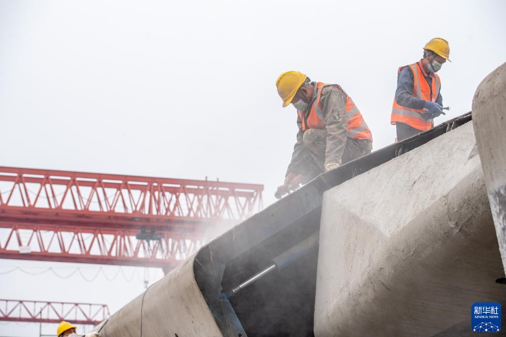 當天,在由中鐵十一局集團承建的渝昆高鐵川渝段站前一標建設施工現場(chǎng),830噸大型箱梁在鴨子堡特大橋成功架設,標志著(zhù)渝昆高鐵重慶段實(shí)現節后全面復工復產(chǎn)。