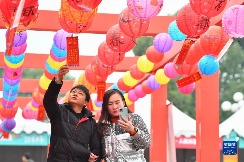2月4日,市民和游客在湖南非遺元宵喜樂(lè )會(huì )現場(chǎng)參加猜燈謎活動(dòng)。
