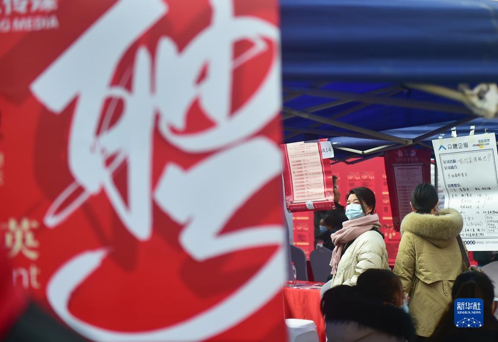 2月4日,在河南省洛陽(yáng)市澗西區“春風(fēng)送真情·援助暖民心”招聘會(huì )上,求職者在了解崗位信息。