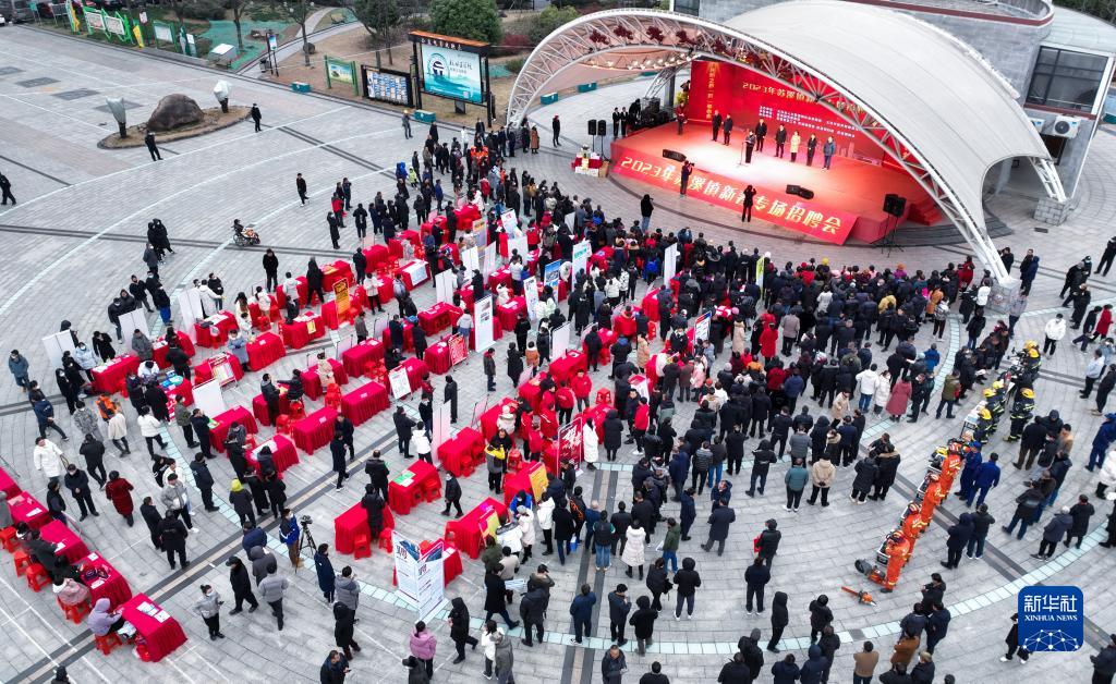 2月4日拍攝的招聘會(huì )現場(chǎng)(無(wú)人機照片)。