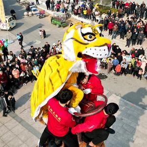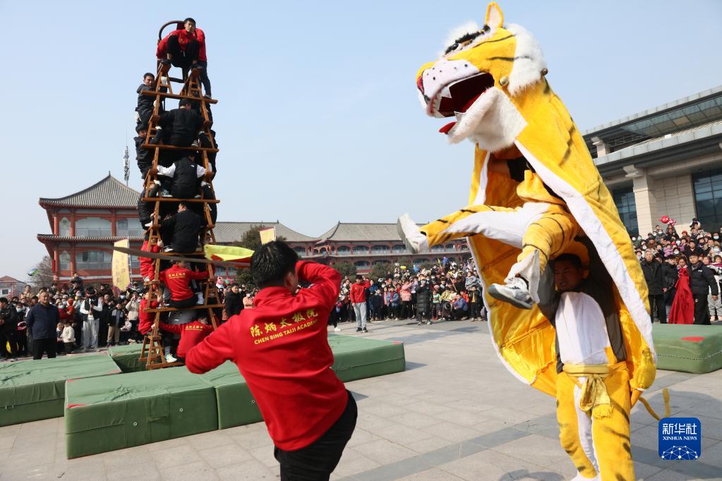 當日,河南省焦作市溫縣陳家溝村流傳數百年的傳統民俗節目“陳家溝舞虎”精彩上演,讓觀(guān)眾大飽眼福。