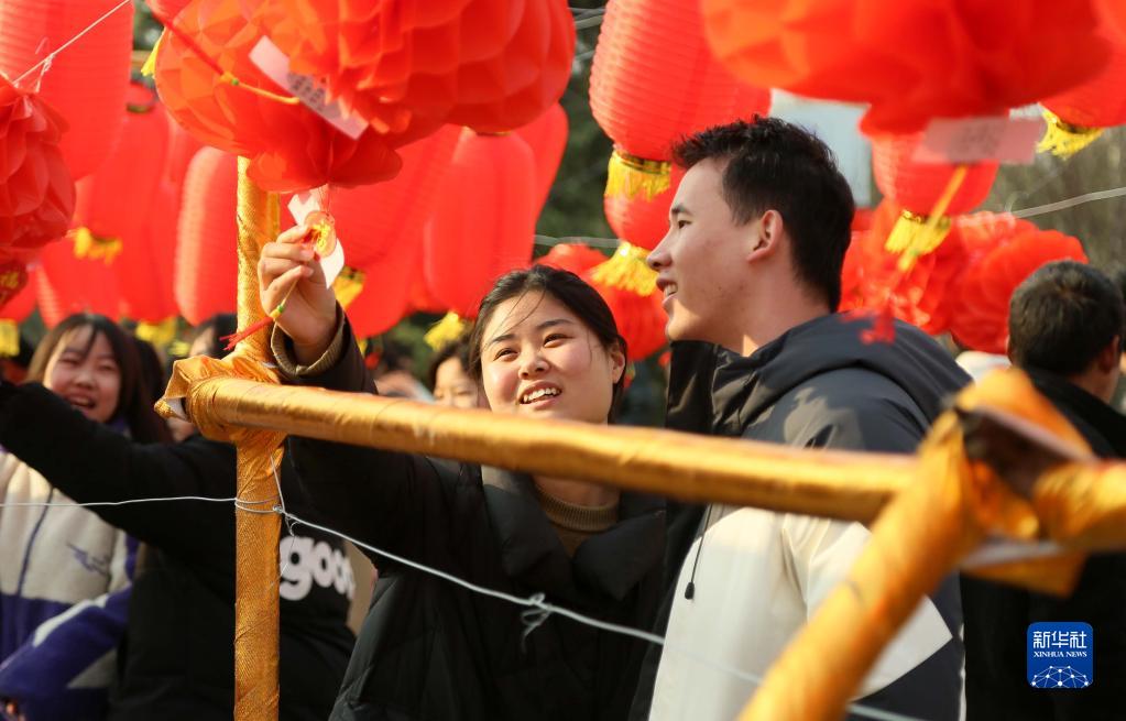 2月4日,河南省洛陽(yáng)市汝陽(yáng)縣劉店鎮紅里村農民在參加猜謎語(yǔ)比賽。