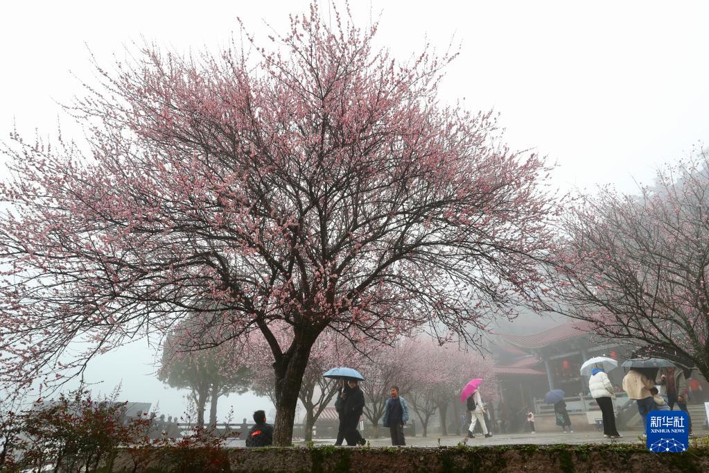立春時(shí)節,位于福州北峰山區的千年古剎林陽(yáng)寺梅花相繼綻放,吸引眾多游客前來(lái)游玩賞花。