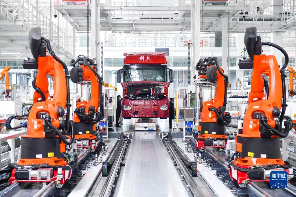 員工在位于吉林長(cháng)春的一汽解放J7智能工廠(chǎng)內進(jìn)行整車(chē)裝配作業(yè)(1月31日攝)。