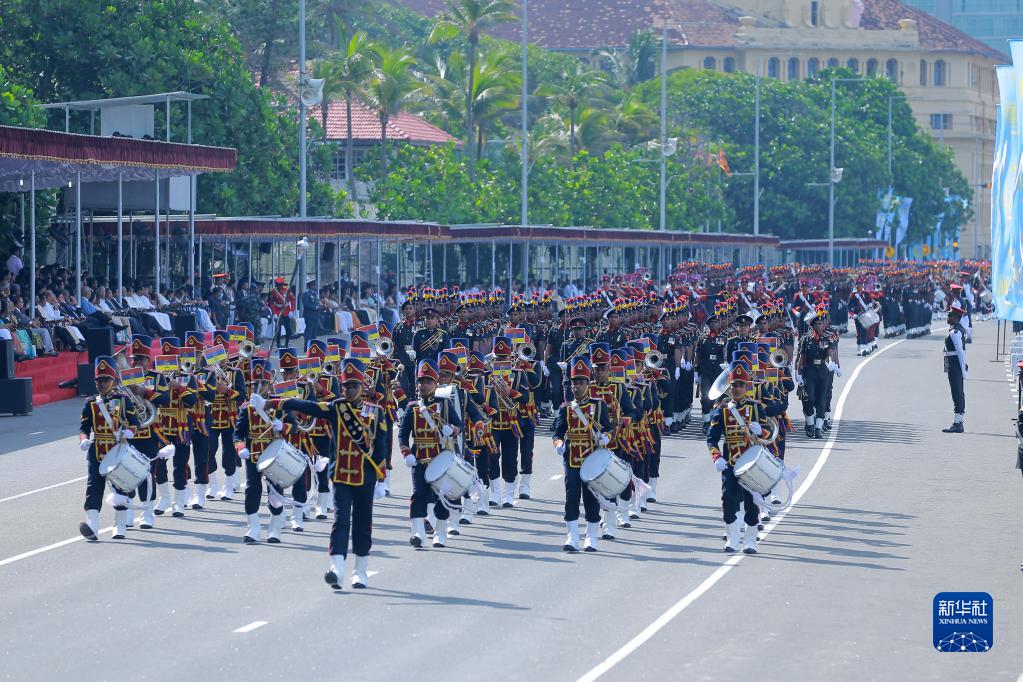 2月4日,斯里蘭卡士兵在首都科倫坡參加閱兵儀式,慶祝斯里蘭卡獨立75周年。