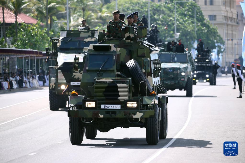 2月4日,斯里蘭卡士兵在首都科倫坡參加閱兵儀式,慶祝斯里蘭卡獨立75周年。