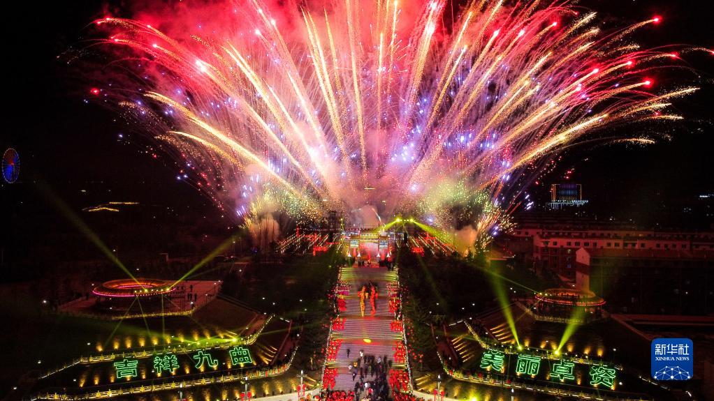 2月4日拍攝的第四屆“吉祥九曲 美麗卓資”文化節現場(chǎng)(無(wú)人機照片)。