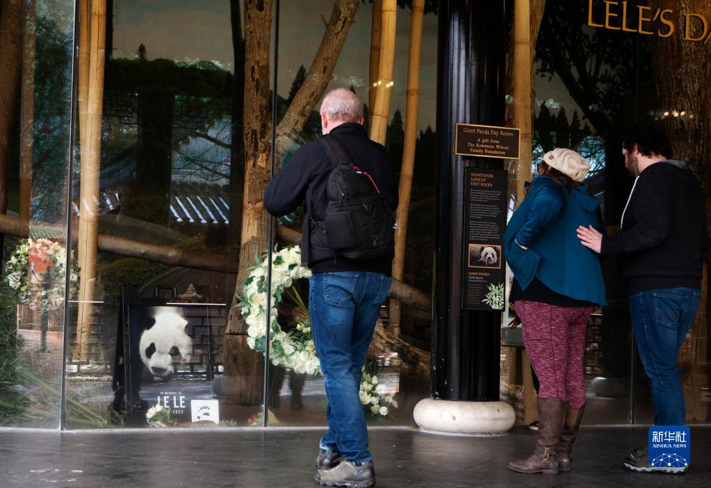 2月4日,在美國田納西州孟菲斯動(dòng)物園,市民在大熊貓“樂(lè )樂(lè )”的照片前悼念。