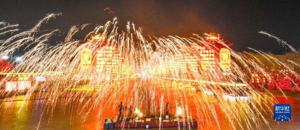 當晚,河北省唐山市豐南區河頭老街景區火樹(shù)銀花,耀眼奪目。民間藝人表演的打鐵花,吸引游客駐足觀(guān)看。