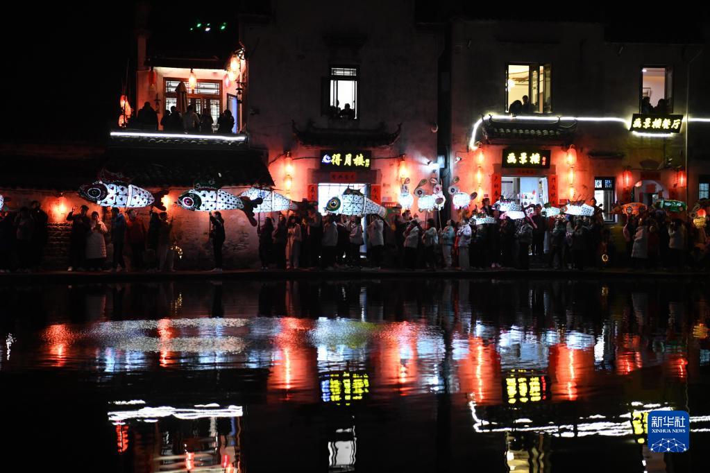 這是宏村舉行的迎元宵鬧花燈活動(dòng)(2月4日攝)。