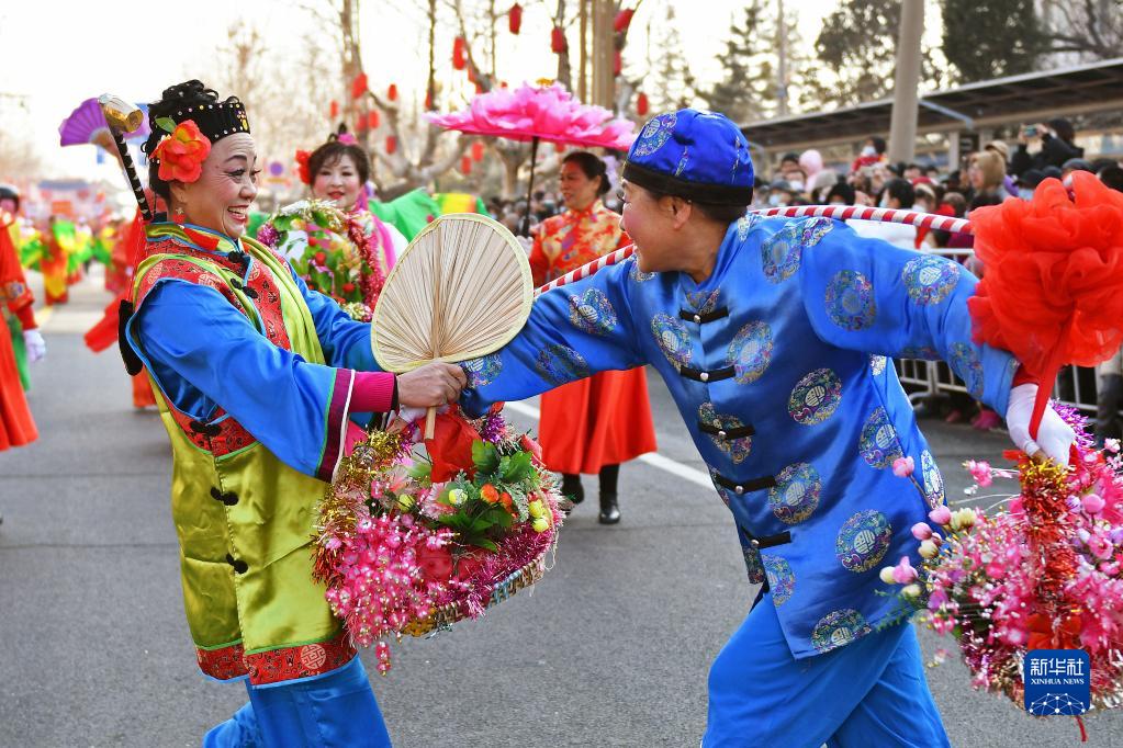 2月5日,民間藝人在山東省煙臺市福山區縣府街進(jìn)行民俗表演。
