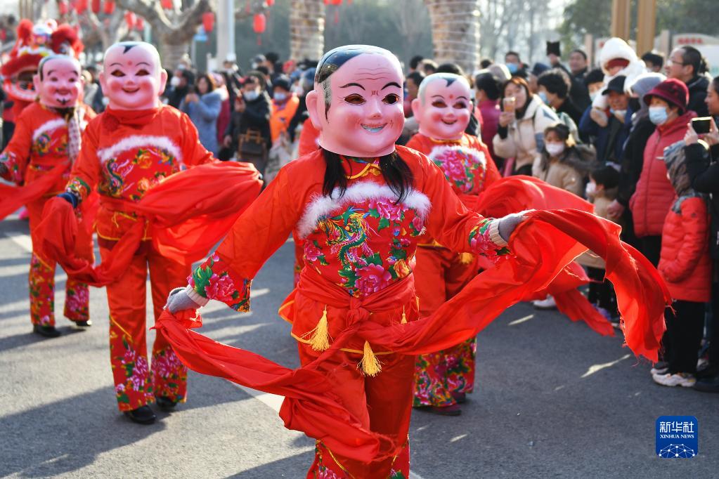 2月5日,民間藝人在山東省煙臺市福山區縣府街進(jìn)行民俗表演。