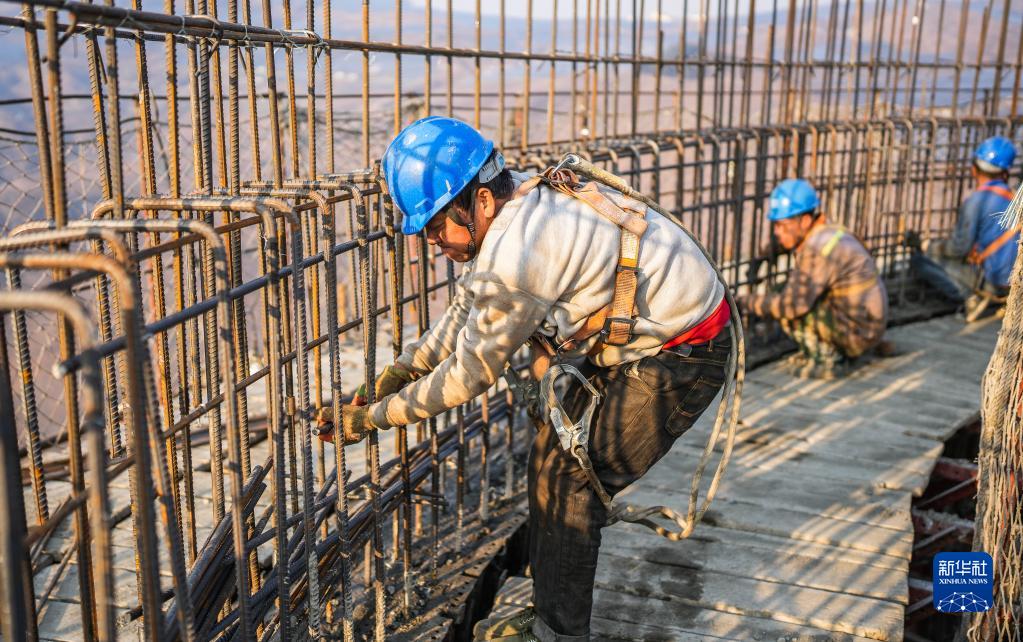 工人在盤(pán)江新光燃煤發(fā)電項目現場(chǎng)施工(2月1日攝)。