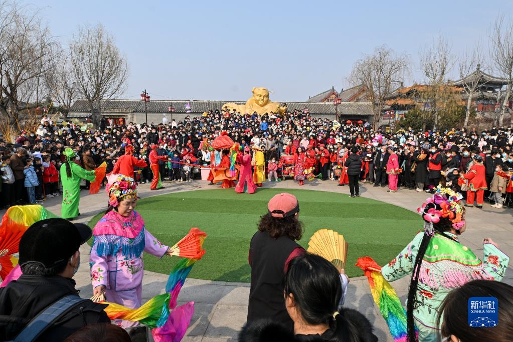 2月5日,游客在天津市西青區楊柳青古鎮觀(guān)看民俗表演。