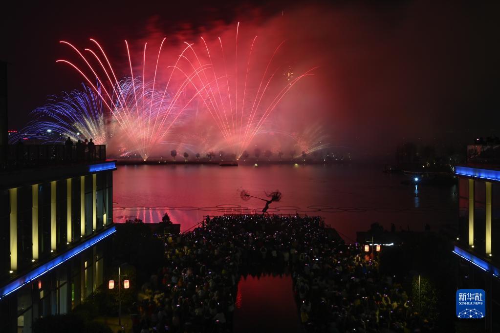 當晚,“迎亞運、慶元宵”煙花燈光秀在浙江杭州舉行。