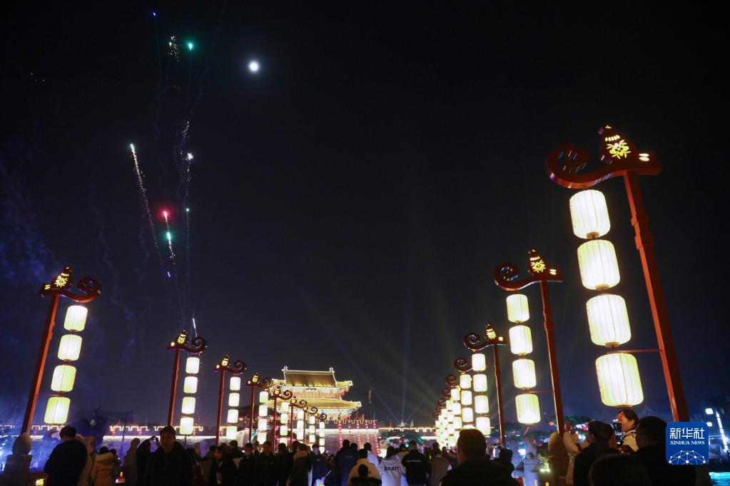 當日是農歷正月十五元宵節,在河南省??h古城里,古色古香的建筑配合璀璨燈光,吸引眾多游客沉醉其中,度過(guò)難忘的元宵夜。