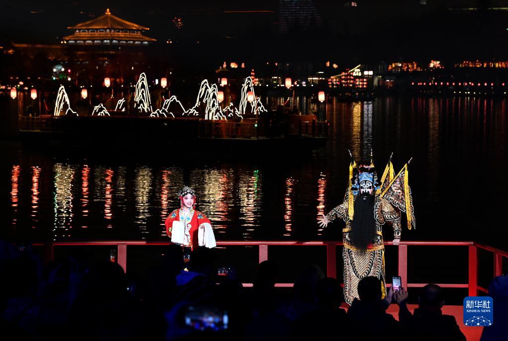 2月5日晚,2023西安曲江上元煙花晚會(huì )在大唐芙蓉園舉行。晚會(huì )上燈在水里游、人在船中舞、焰火漫天空,西安市勞模及先進(jìn)工作者、公安和消防及醫護人員等社會(huì )各界人士代表千余人和3000名市民代表相聚觀(guān)演。