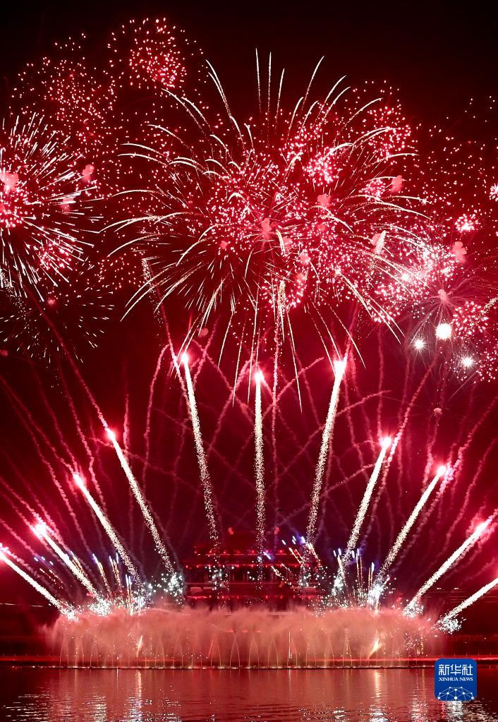 西安曲江上元煙花晚會(huì )演出現場(chǎng)(2月5日攝)。