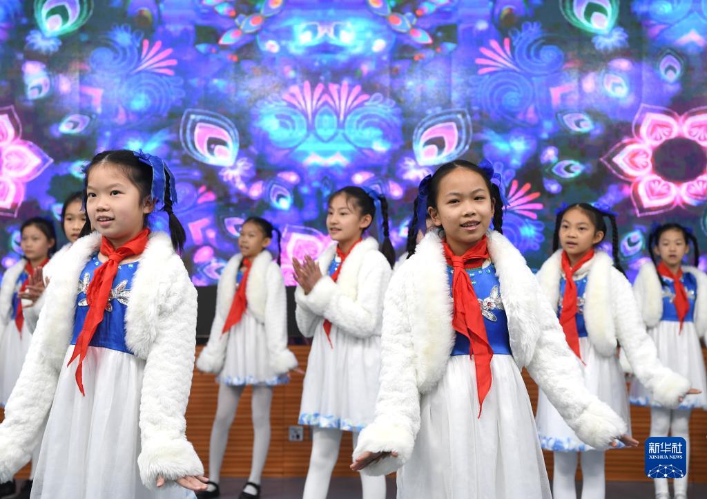 2月6日,學(xué)生在廣西南寧市濱湖路小學(xué)教育集團濱湖校區開(kāi)學(xué)儀式上合唱歌曲。