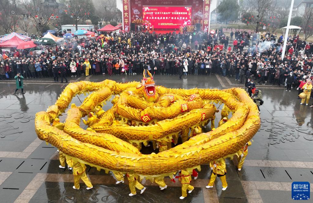 2月6日,人們在全椒縣太平文化廣場(chǎng)觀(guān)看舞龍表演(無(wú)人機照片)。