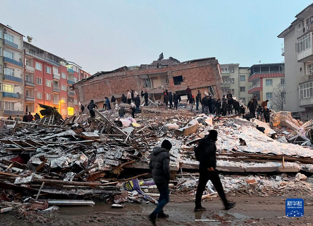 2月6日,人們聚集在土耳其馬拉蒂亞一處倒塌的建筑附近。