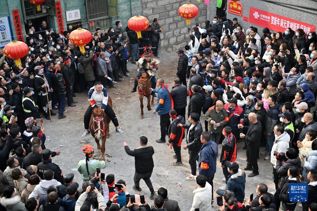 2月6日,平定縣下董寨村村民在表演“跑馬排”。