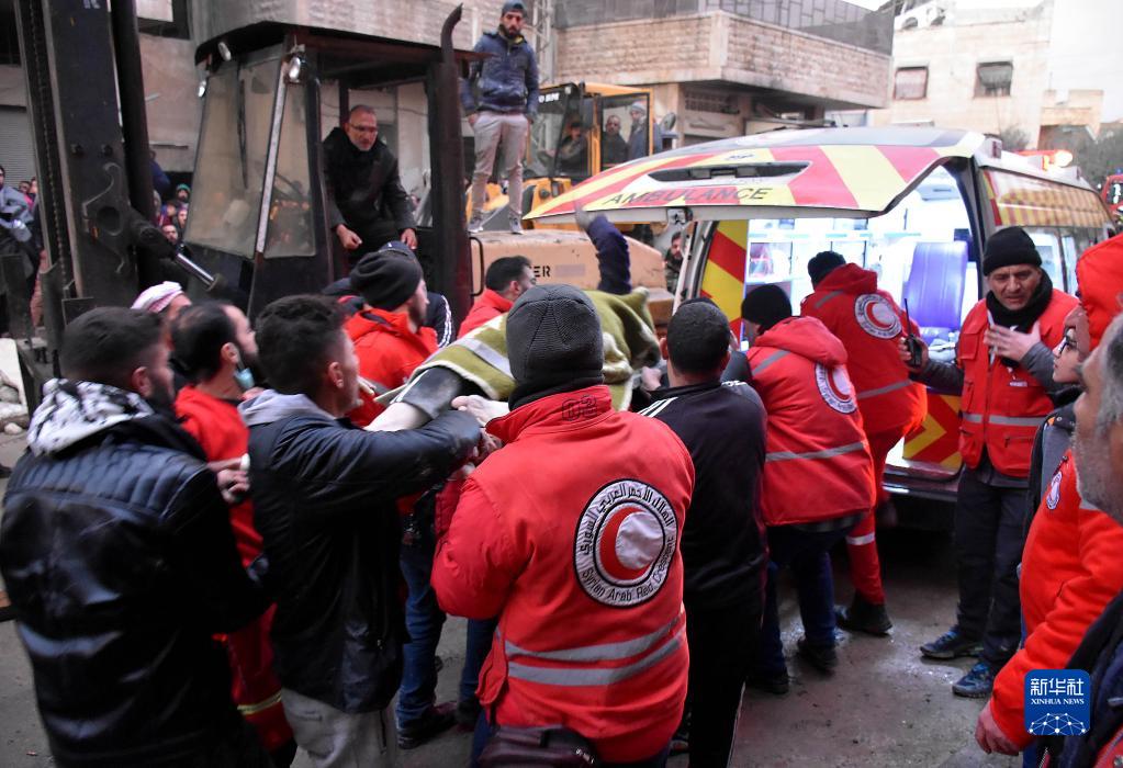2月6日,人們在敘利亞哈馬省轉運傷者。