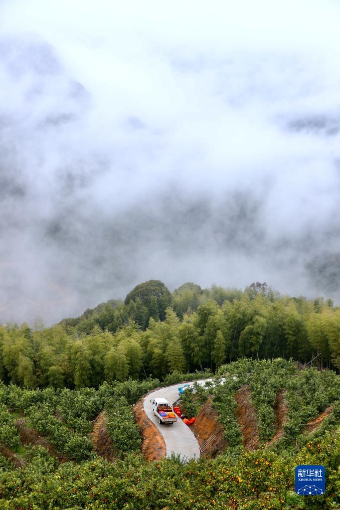 在福斗村大森林碩豐農業(yè)高山水果基地,汽車(chē)運輸收獲的砂糖橘(2月5日攝)。