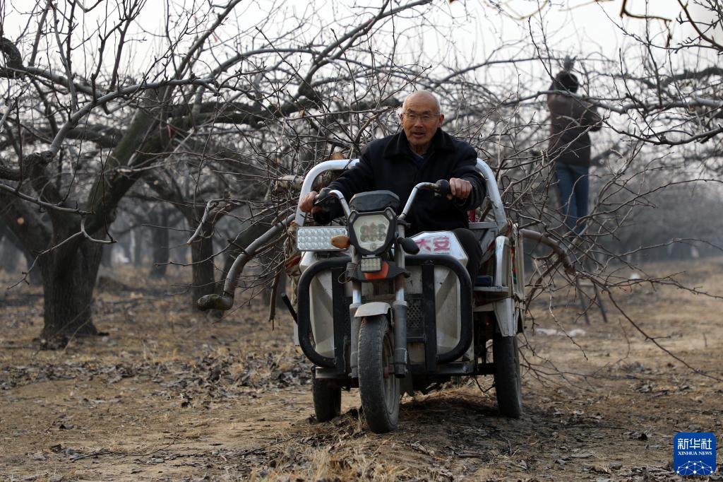 2月6日,石家莊市趙縣精園梨果專(zhuān)業(yè)合作社果農在梨園運輸修剪下來(lái)的梨樹(shù)枝。