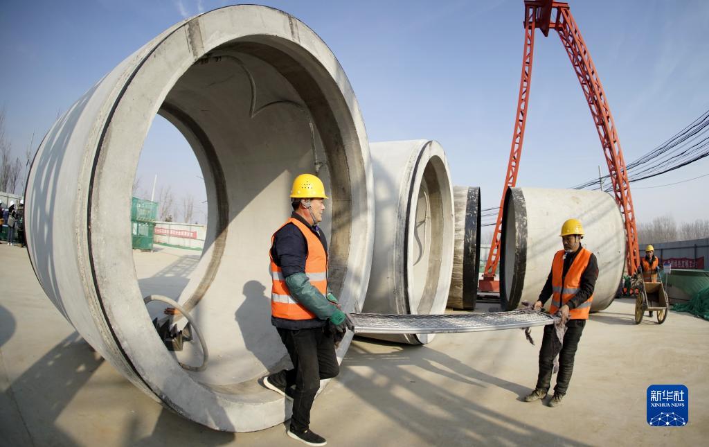 2月6日,工人在南水北調配套工程北京大興支線(xiàn)機場(chǎng)連接線(xiàn)工地搬運建筑材料。