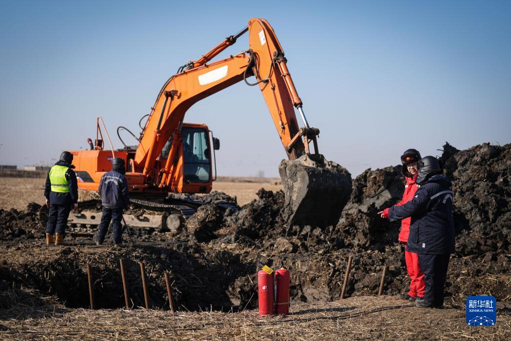 2月6日,中國石油遼河油田興隆臺輸氣分公司巡線(xiàn)工人(右二)在施工現場(chǎng)與施工人員交流維修情況。