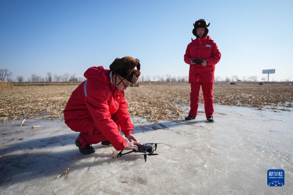 2月6日,中國石油遼河油田興隆臺輸氣分公司巡線(xiàn)工人準備使用無(wú)人機進(jìn)行巡線(xiàn)工作。