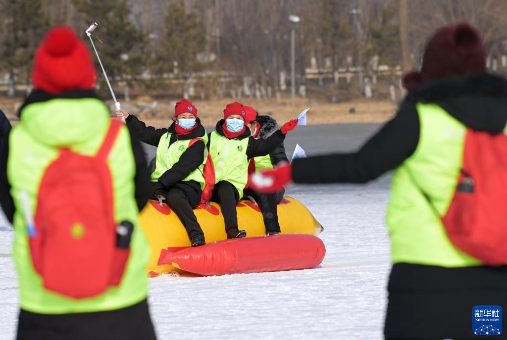 2月7日,人們在活動(dòng)現場(chǎng)體驗雪上項目。