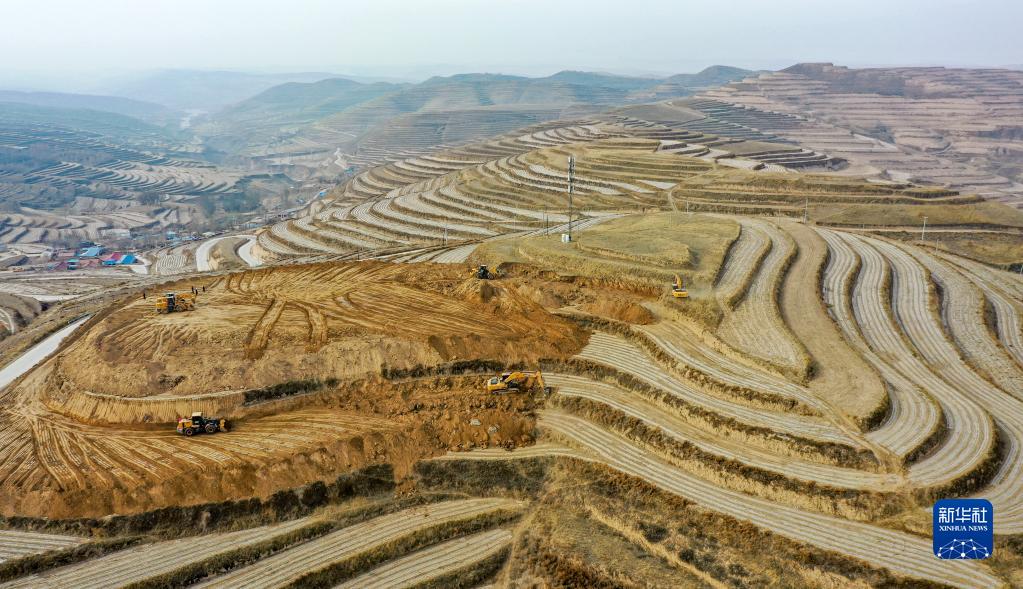 早春時(shí)節,多臺大型機械設備在寧夏固原市西吉縣的梯田上為建設高標準農田忙碌作業(yè)。今年寧夏全區計劃新建和改造高標準農田93.7萬(wàn)畝,重點(diǎn)向西海固地區傾斜,其中西吉縣今年計劃建設高標準農田25萬(wàn)畝。
