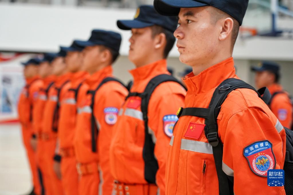 2月7日,中國救援隊隊員在北京大興消防訓練基地準備出發(fā)。