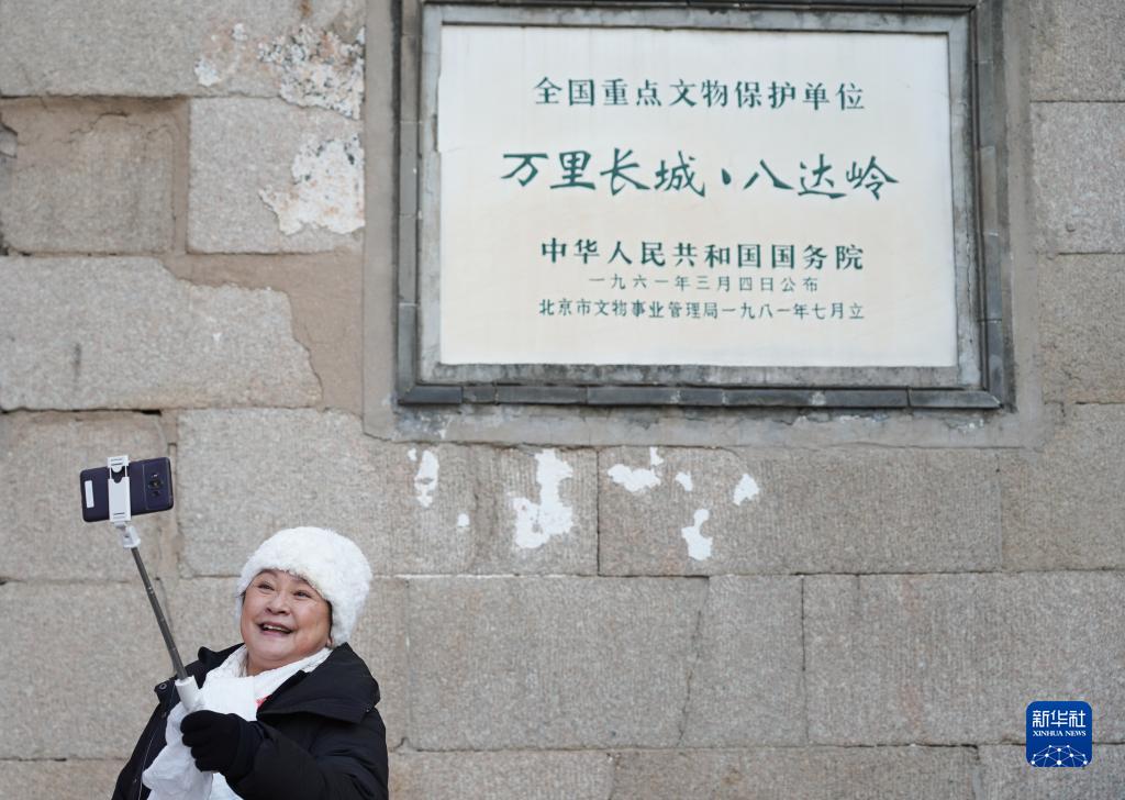 2月7日,香港游客黃淑儀在北京八達嶺長(cháng)城景區自拍。