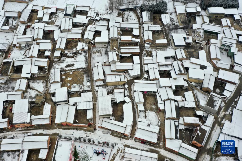 這是2月8日在甘肅省定西市岷縣境內拍攝的春日雪景(無(wú)人機照片)。