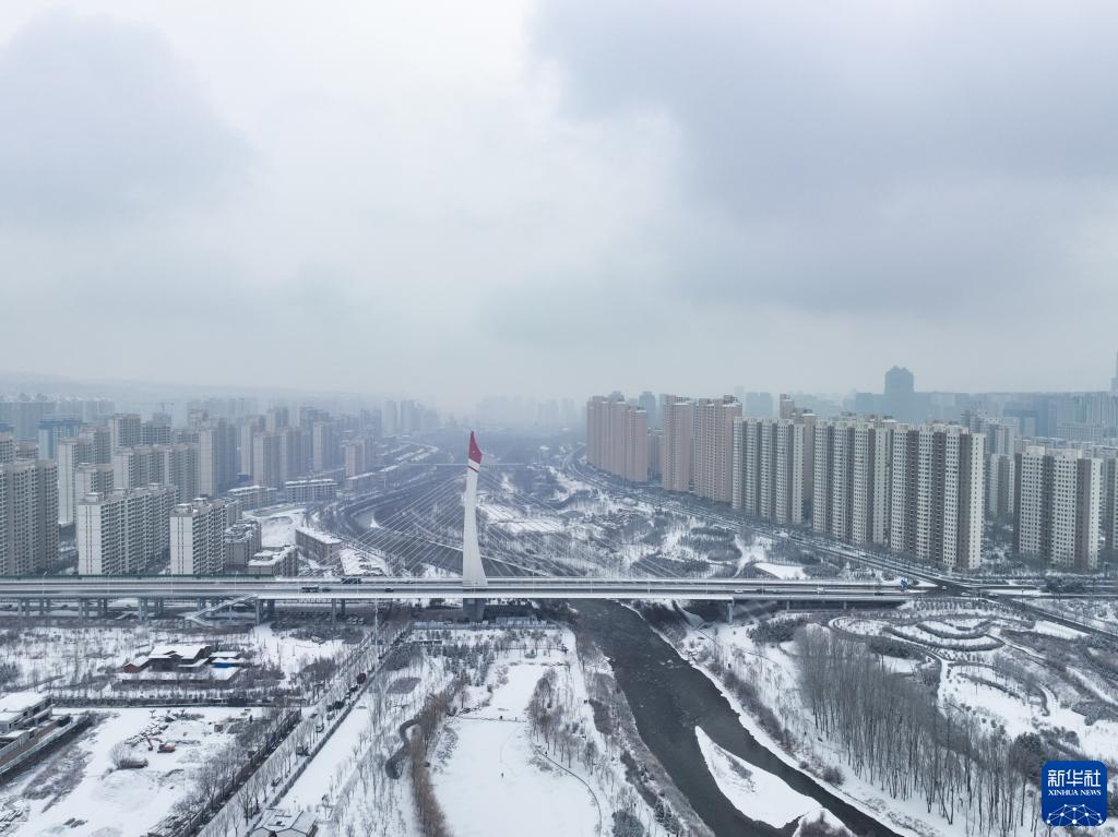 這是2月8日拍攝的青海省西寧市雪景(無(wú)人機照片)。