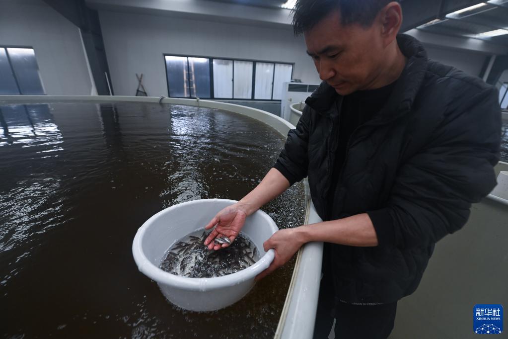 2月8日,在位于湖州市織里鎮的漁大哥水產(chǎn)養殖專(zhuān)業(yè)合作社育苗室內,工作人員查看鱸魚(yú)苗的長(cháng)勢。