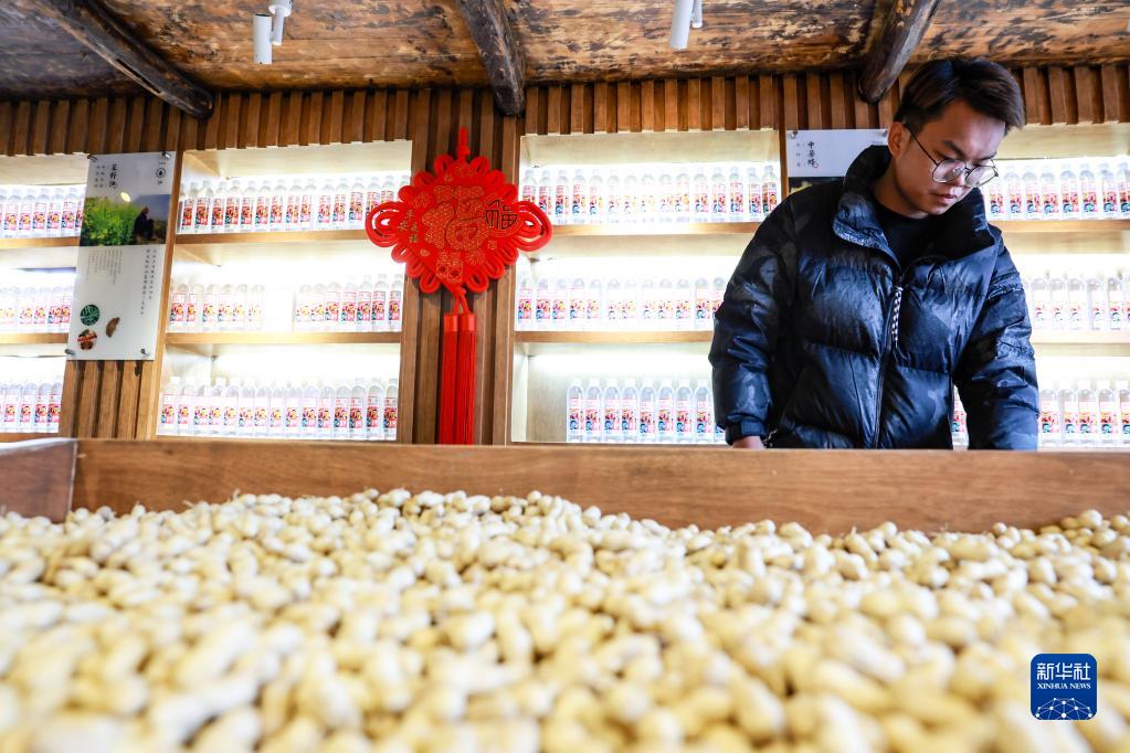村民在團結村供銷(xiāo)社內擺放貨物(2月2日攝)。