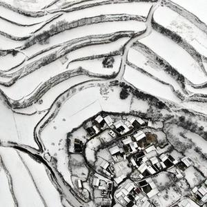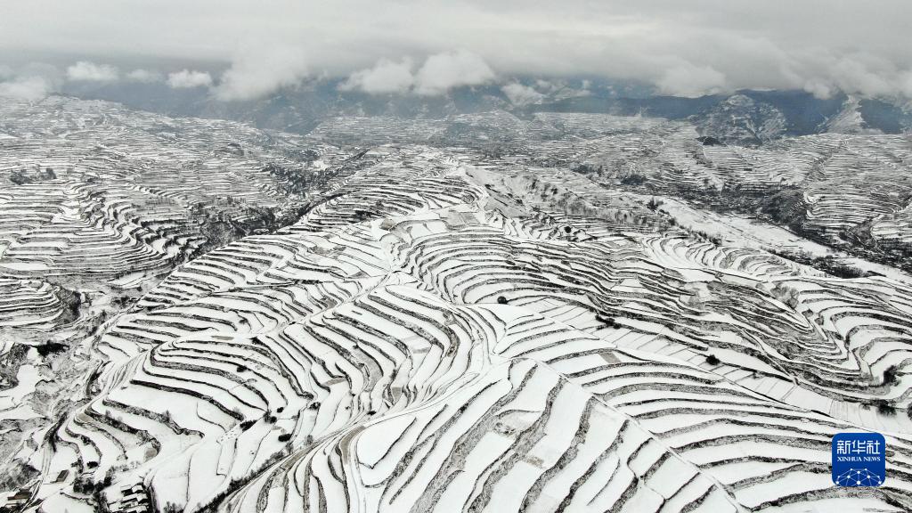 2月8日在隴南市宕昌縣哈達鋪鎮拉路梁梯田拍攝的雪景。