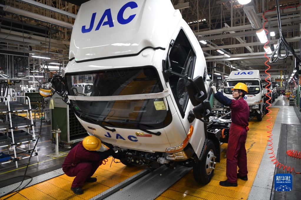 2月8日,工人在江淮汽車(chē)新港基地輕卡生產(chǎn)線(xiàn)上忙碌。