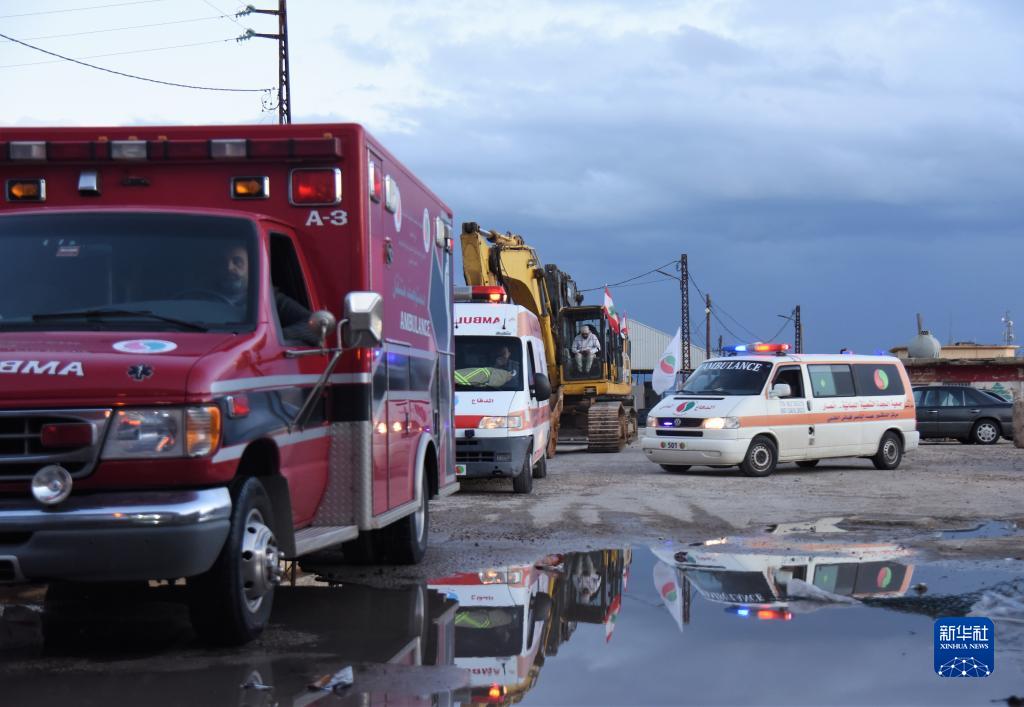 2月8日,黎巴嫩救援車(chē)輛準備通過(guò)邊境的阿里達口岸進(jìn)入敘利亞。