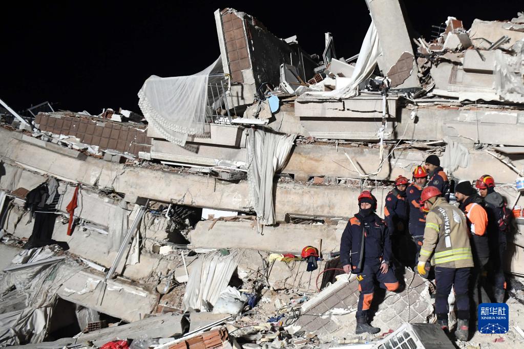 2月8日,救援人員在土耳其哈塔伊的一處地震廢墟搜救。