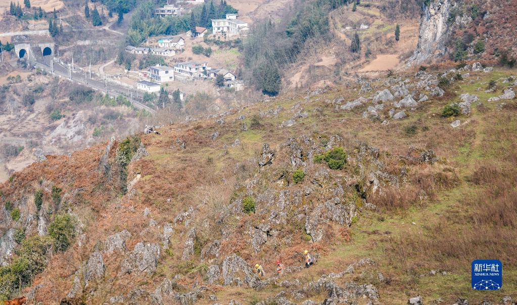 滬昆鐵路貴州段地勢險峻,途經(jīng)的烏蒙山脈多屬喀斯特地貌,鐵路沿線(xiàn)高山林立,溝壑縱橫,不時(shí)有落石崩塌掉落。為確保列車(chē)安全運行,中國鐵路成都局集團公司六盤(pán)水工電段的職工登山越嶺、搜山掃危,在高山之上守護著(zhù)穿行群山的春運列車(chē)。