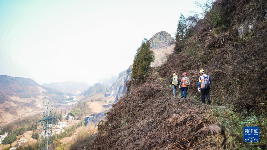 六盤(pán)水工電段職工在滬昆鐵路茨沖至濫壩區段登山巡檢(2月8日攝)。