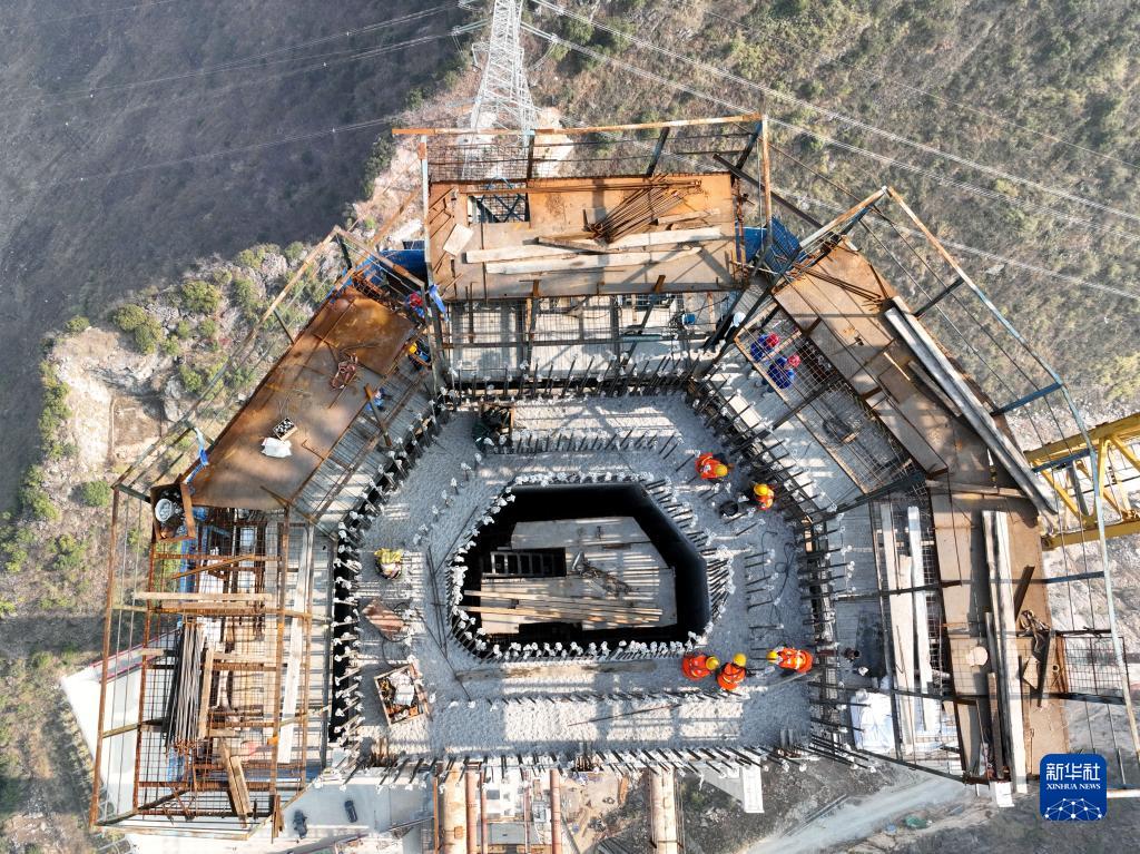 這是2月1日拍攝的花江峽谷大橋施工現場(chǎng)(無(wú)人機照片)。